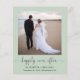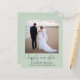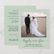 Elegante e orçamental, elopeia verde ou anúncio privado de casamento e convite de recepção. A frente mostra sua foto, "feliz para sempre" em um roteiro de chic com sucos e seus primeiros nomes, data de casamento e local. No verso, personalize seu anúncio de casamento e sua recepção ou convite de festas, insira seu endereço URL do site de casamento para criar um código QR para os convidados digitalizarem suas fotos de casamento, todos os detalhes e para RSVP on-line e assine seus nomes casados em um roteiro semelhante a assinatura.