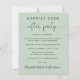 Elegante elopeia verde de orçamento ou anúncio privado de casamento e convite para recepções de casamento. A frente apresenta "Felizmente Nunca Depois da Festa" em uma mistura de uma simples tipografia e um roteiro de na moda com pontos, e você pode personalizar seu anúncio e convite e adicionar seus nomes em um roteiro semelhante a assinatura. No verso, adicione o endereço do site do casamento para criar um código QR para os convidados pesquisarem para acompanhar suas fotos de casamento, todos os detalhes e para RSVP on-line.