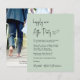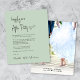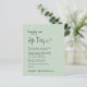 O elopemento verde sensual amigável, o anúncio privado de casamento e o convite de recepção de casamento com a apresentação "Feliz Nunca Depois da Festa" em um roteiro moderno, seu convite na tipografia serif clássica e seus nomes em um roteiro semelhante a assinatura. O verso mostra sua foto, nomes e datas de casamento e recepção.