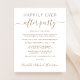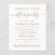 Eleição orçamental ou anúncio privado de casamento e convite de festas de recepção de casamento ou celebração. A frente apresenta "Felizmente, Nunca Depois da Festa" em uma simples tipografia dourada e um guião de ouro com baloiços. Personalize o seu anúncio e convite e adicione os seus nomes num script dourado tipo assinatura. O verso mostra seus nomes e a data do casamento.