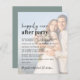 O convite moderno à recepção de casamento verde, de fácil orçamento, com a sua foto, foi sobrecarregado com "Feliz Nunca Depois do Partido" numa mistura de um roteiro contemporâneo e uma carta ousada. Personalize seu convite e adicione seus nomes em um script semelhante a assinatura. No verso, seus nomes e datas de casamento e recepção estão em letras brancas simples e unidas por um coração (se suas datas de casamento e recepção forem diferentes, mantenha seus primeiros nomes no topo e seus dois encontros separados pelo coração em uma segunda linha).