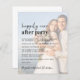 O anúncio de casamento e convite de recepção moderno e amigável ao orçamento, com a sua foto, sobreposta a "Felizmente Nunca Depois da Festa" numa mistura de uma escrita contemporânea e uma ousada tipografia moderna. Personalize sua mensagem e convite com mais detalhes e adicione seus nomes em um script semelhante a assinatura.