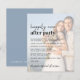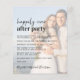 O anúncio de casamento e o convite de recepção modernos e amigáveis ao orçamento, com sua foto, sobrecarregados com "Feliz Nunca Depois da Festa" em uma mistura de um roteiro contemporâneo e uma carta ousada. Personalize sua mensagem e convite e adicione seus nomes em um script semelhante a assinatura. No verso, seus nomes e datas de casamento e recepção estão em letras brancas simples e unidas por um coração (se suas datas de casamento e recepção forem diferentes, mantenha seus primeiros nomes no topo e seus dois encontros separados pelo coração em uma segunda linha).