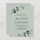Orçamento Eucalyptus Greenery Sage QR Code Elegante Script Typografia Convite para Recepção de casamento... Nosso convite para recepção de casamento botânica verde de barato apresenta galhos elegantes de eucalipto com sábio e folhas de esmeralda criando uma fronteira natural para o texto do convite. A parte traseira do cartão contém o URL do seu site de casamento e um gráfico de código QR de exemplo que você pode substituir facilmente por suas próprias informações ao mesmo tempo que você está revisando o texto. Todo texto de exemplo pode ser facilmente revisado com seus próprios detalhes no modelo de personalização. Este convite de recepção de estilo moderno foi projetado para ser elegante e economizador de tempo, criado especialmente para as noivas ocupadas.