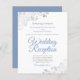 Estes convites para recepções de casamento baratos, amigáveis ao orçamento são a escolha perfeita para classe, estilo e beleza em um orçamento. Projetados para convidados para a recepção, mas não para a cerimônia, eles apresentam um fundo branco clássico com ornamentados de forro de prata nos cantos. A tipografia inclui rico empoeirado de letras azuis para um estilo simples e elegante. Uma maneira maravilhosa de convidar seus amigos e família para compartilhar sua alegria em seu dia especial sem quebrar o banco.