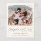 Lelopeia de creme leve e anúncio privado de casamento e convite de recepção de casamento. A frente mostra sua foto, "Celebrar Conosco" em um guião de ouro-chico e seus primeiros nomes, data de casamento e local em uma simples tipografia de ouro moderna. No verso, personalize seu convite e assine seus nomes em um script dourado como assinatura. Este papel semirbrilhante do orçamento é semelhante em peso ao papel fotográfico. Uma versão tradicional de estoque de cartão grosso também está disponível (mensagem para o link).