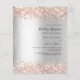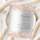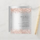 Um fundo de olhar mal prateado. Decorado com rosa dourado falso brilho. Personalize e adicione seus nomes e detalhes de recepção. 1 folha = 1 convite impresso de borda a borda.