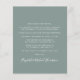 A elopeia verde de sábio amigável ou anúncio privado de casamento e convite de recepção. A frente apresenta sua foto e "Feliz Festa Depois" em letras brancas modernas e uma elegante escrita branca com traços. Adicione seus primeiros nomes e a data do casamento. No verso, você pode personalizar seus detalhes de recepção e adicionar seus nomes em um script semelhante a assinatura. Este papel semirbrilhante do orçamento é semelhante em peso ao papel fotográfico. Também está disponível uma versão maior do estoque de cartão tradicional 5x7 (mensagem para o link).