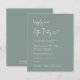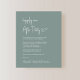 Convidado de recepção de casamento verde sensual amigável para orçamento apresentando "Feliz Nunca Depois da Festa" em um roteiro branco moderno, seu convite na tipografia serif branca clássica e seus nomes em um roteiro semelhante a assinatura.
