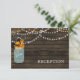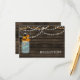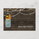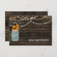 Rustic Barnwood, luzes de cordas balançando com folhas de queda em um convite de recepção de casamento de jarro mason. Produtos correspondentes também disponíveis.