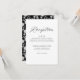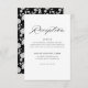 Um design minimalista elegante de roteiro em um tema preto e branco. Excelente a ser usado para um casamento ou recepção de eventos especiais. O verso tem um padrão floral romano preto e branco opcional, preto e branco.