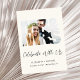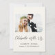 Elemento simples e chique de creme leve ou pequeno anúncio de casamento e convite de recepção de casamento. Na frente, sua foto está no quadro "Sr. & Sra.", "Celebrar conosco" está em um roteiro elegante e seus nomes, data de casamento e local estão em uma simples tipografia moderna. No verso, personalize seu anúncio de casamento e seu convite de recepção e adicione seus nomes em um script semelhante a assinatura.
