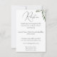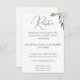 Bonito e simples convite à recepção de casamento, com folhas verdes elegantes e design de flores brancas.