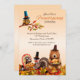 Um doce convite para uma comemoração de Amizade apresenta um grupo de animais entre as coloridas folhas de outono e abóboras. Um urso está segurando uma bandeja com um janto de peru e um guaxinim e peru seguram uma deliciosa torta. Acima está uma coruja em um galho com folhas de outono. Este convite caprichoso é certamente para agradar aos seus amigos.