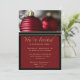 Um elegante Convite de festas de Natal com uma imagem de Enfeites de natal vermelhos. É PERSONALIZÁVEL permitir que você altere as informações de hora, data, local e RSVP. Você pode mudar fontes e cores de texto ou me informar e eu posso ajudá-lo a personalizá-lo.
