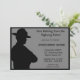 Convite de aposentadoria para um Patrolman de Rodovia com uma silhueta de um patrolman. O fundo é cinza e preto. O lado de trás tem um chapéu de patrulha e algemas de mão. Fácil de personalizar com os detalhes da sua festa.
