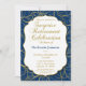 Este clássico convite de festas de aposentadoria surpresa na moda apresenta fundo azul marinho com pistas douradas falsas.