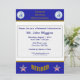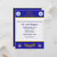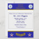 Este convite azul e dourado é decorado com o logotipo da Administração de Serviços Gerais (GSA). O verso é decorado com o logotipo da GSA e a palavra "Aposentado".
