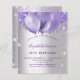 Para um elegante aniversário de 18 anos (ou qualquer idade). Um fundo na moda falsa de prata. Decorado com brilho de falso colorido violeta e lavanda e balões. Personalize e adicione um nome, idade e detalhes da festa. O nome é escrito com um script de estilo manuscrito