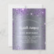 Um convite moderno, na moda e glamouroso para uma festa de aniversário de 21 ruas (ou qualquer idade). Um fundo metálico de aparência escura e falso prateado com brilho púrpura, brilhos. O nome é escrito com um moderno estilo escrito à mão. Personalize e adicione os detalhes da sua festa.