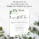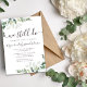 Um convite elegante para renovação de votos com aquarela eucalipto verde.