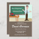 Este convite de festas de aposentadoria único apresenta um professor masculino divertido na frente de sua mesa e quadro.