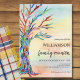 Cartão de Convite para Reunião da Família em Árvore Familiar. Convide sua família para a Reunião Familiar com este convite para na moda. Apresenta uma árvore genealógica nas cores do arco-íris num fundo de aquarela. Personalize com seu nome de família e seus detalhes. Este design único é um impressão de um mosaico da Árvore Familiar que foi feito de pequenos pedaços de vidro de cor clara. Porque nós criamos nosso próprio trabalho de arte você não encontrará essa imagem exata de outros designers. Mosaico original © Michele Davies.