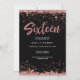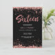 Um convite preto simples, mas na moda, com sotaques de brilho rosa para a 16ª festa de aniversário.