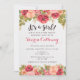 Uma garota está a caminho, comemore com um dia muito especial! Este convite apresenta lindas rosas rosa desenhadas à mão com sotaques florais de ouro.