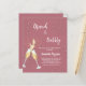 Um convite moderno, na moda e glamouroso para um Chá de panela de bolinho. Um fundo rosa de ouro escuro feminino com bolhas, um par de flautas, óculos. O nome é escrito com um moderno estilo escrito à mão. Personalize e adicione os detalhes da sua festa. 1 folha = 1 convite impresso de borda a borda.