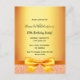 Ouro falso elegante e brilho para uma festa de aniversário 50ª (ou qualquer idade)! Uma fita e um arco dourados, de cor falsa, sobre um fundo glamouroso, de cor dourada. Decorado com brilho rosa dourado e confete. Com o nome e a idade de 50 anos escritos com um estilo escrito moderno e moderno com letras pretas. Modelos para informações sobre a sua parte. Dica: Se você não quiser que pareça um cartão postal, clique em personalizar, vá para o verso e remova o divisor e o carimbo de posto.
