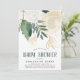 Um convite para chás de fraldas bonito e moderno, com brilho verde, branco e dourado falso, com rosas e folhas de aquarelas e com letra de estilo esmagada.