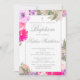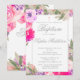 Um convite para o Batismo floral de rosa bonito. O design é cor-de-rosa com um texto prateado que é facilmente alterado para sua informação. Escolha entre uma faixa de tipos de papel. O inverso tem um padrão floral cor-de-rosa e uma cruz com seu próprio nome personalizado.