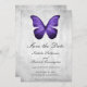Convite elegante e simples para salvar a data do casamento, apresentando uma Borboleta Roxa contra um fundo cinza desgastado. Este design é uma escolha única para anunciar um casamento moderno. Fácil de personalizar com os detalhes do seu casamento. Clique em "Personalize" para encontrar mais opções de personalização.