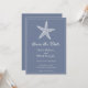 Convite de casamento elegante e simples para salvar a data com uma estrela-do-mar e design de texto simples. Este design é uma escolha única para anunciar um casamento moderno. Fácil de personalizar com os detalhes do seu casamento. Clique em "Personalize" para encontrar mais opções de personalização.