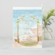 Lindo convite de casamento (ou cartão "salve o dia") com ilustração em aquarela tema praia, perfeito para seu casamento de verão, cerimônia de casamento, recepção de casamento. Você pode gerar seu próprio código de leitura qr e adicioná-lo no verso para que os convidados respondam e acessem seu site de casamento usando as ferramentas de personalização da Zazzle. Você também pode remover o texto ou a imagem no verso e adicionar outra foto do noivado para criar um souvenir de casamento único para o álbum de fotos de casamento dos seus convidados. Para dicas de planejamento de casamento, guias impressos gratuitos e downloads digitais, visite www.lowbudgetwedding.network.