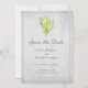 Convite elegante e simples para salvar a data do casamento, apresentando uma concha vintage contra um fundo cinza desgastado. Este design é uma escolha única para anunciar um casamento moderno. Fácil de personalizar com os detalhes do seu casamento. Clique em "Personalizar" para encontrar mais opções de personalização.