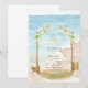 Lindo convite (ou aviso de "salve a data") de casamento com tema de praia ilustrado com aquarela, perfeito para seu casamento de verão, fuga romântica, cerimônia de casamento, recepção de casamento. Você pode gerar seu próprio código de leitura QR e adicioná-lo ao verso para que os convidados respondam e acessem seu site de casamento usando as ferramentas de personalização da Zazzle. Você também pode remover o texto ou a imagem no verso e adicionar outra foto do noivado para criar um souvenir de casamento único para o álbum de fotos de casamento dos seus convidados. Para dicas de planejamento de casamento, guias impressos gratuitos e downloads digitais, visite www.lowbudgetwedding.network.