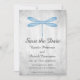 Convite elegante e simples para salvar a data do casamento, apresentando uma libélula azul contra um fundo cinza desgastado. Este design é uma escolha única para anunciar um casamento moderno. Fácil de personalizar com os detalhes do seu casamento. Clique "Personalize-o" para encontrar mais opções de personalização.