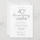 Convites para o 40º aniversário de casamento. A fonte do script é realçada com a fonte de nome de serif de leitura fácil. Fácil de ajustar para as suas necessidades de casamento. Design elegante preto e branco mínimo.