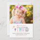 Este convite de aniversário de querido apresenta "DOIS" em diferentes cores, com um gato rabiscado, borboleta, flor e sol. Personalize o modelo com seu próprio texto e foto para convites stand-out para enviar a amigos e familiares!