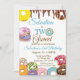Prepare-se para uma doce celebração com este charmoso convite de aniversário de rosquinha "DOIS Doces"! Perfeito para a festa de segundo aniversário de um garoto, este design apresenta rosquinhas coloridas, doces borrachas e deliciosos pingos de glacé. A tipografia divertida e moderna a torna perfeita para uma rosquinha cheia de diversão ou para uma festa de doces. É totalmente personalizável com todos os detalhes do seu evento. Precisa de um Cartões de agradecimentos correspondente? Encontre-o aqui: https://www.zazzle.com/sweet_donut_birthday_thank_you_card-256810781407005469?rf=238984912088086301