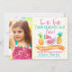 Este convite para fotos de segundo aniversário colorido de duas tti frutti é uma excelente de convidar seus convidados de dois anos para a festa dela. O design apresenta dois ananases e fatias de melancia, bem como um banner, um padrão de pontos aleatórios e uma fonte de estilo escrita à mão e caligrafia. O fundo é branco. Um convite para design sem fotografia está disponível na loja. O convite de segundo aniversário de duas cores aquáticas desta rapariga está pronto para ser personalizado.