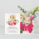 Adorável segundo convite de aniversário com um balão de folha de alumínio número dois, adornado com flores rosa bonito com um dorso de coordenação