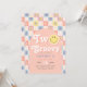 Este convite para segundos aniversários de garotas de groovy captura vibrações retrógradas da década de 70 com um tema cor-de-rosa giro, sotaques florais e um padrão de verificação pastel. Totalmente personalizável, ele inclui espaço para os detalhes de sua festa no script elegante. Perfeito para um aniversário de "Dois Groovy", este design de menina divertida adiciona charme ao seu dia especial!