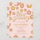 Convidado para segundo aniversário moderno. Retro inspirou dois sulcos com a segunda festa de aniversário com estilo hippie, flores margaridas e fontes boho.