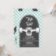 Convidado para o segundo aniversário de dois andares na skate com verificação azul e skate board.