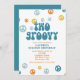 Dois Groovy Retro inspirou o convite para o segundo aniversário com fontes e cores do estilo 70.