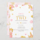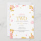 Torne seu aniversário mágico com este convite de segundo aniversário temático da princesa em rosa suave e ouro. Apresentando um castelo de conto de fadas, princesa e ícones bonitos — totalmente personalizável para o grande dia de sua garotinha especial!