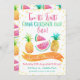 Este segundo aniversário colorido de duas tti frutti, cor d'água, é uma forma excelente de convidar seus convidados de dois anos para a festa dela. O design apresenta dois ananases e fatias de melancia, bem como uma faixa, um padrão de pontos aleatórios e uma letra de caligrafia e estilo de escrita manual. O fundo é branco. Um convite de design com uma fotografia está disponível na loja. O convite para segundo aniversário de duas frutas frutti de aquarela desta menina está pronto para ser personalizado.